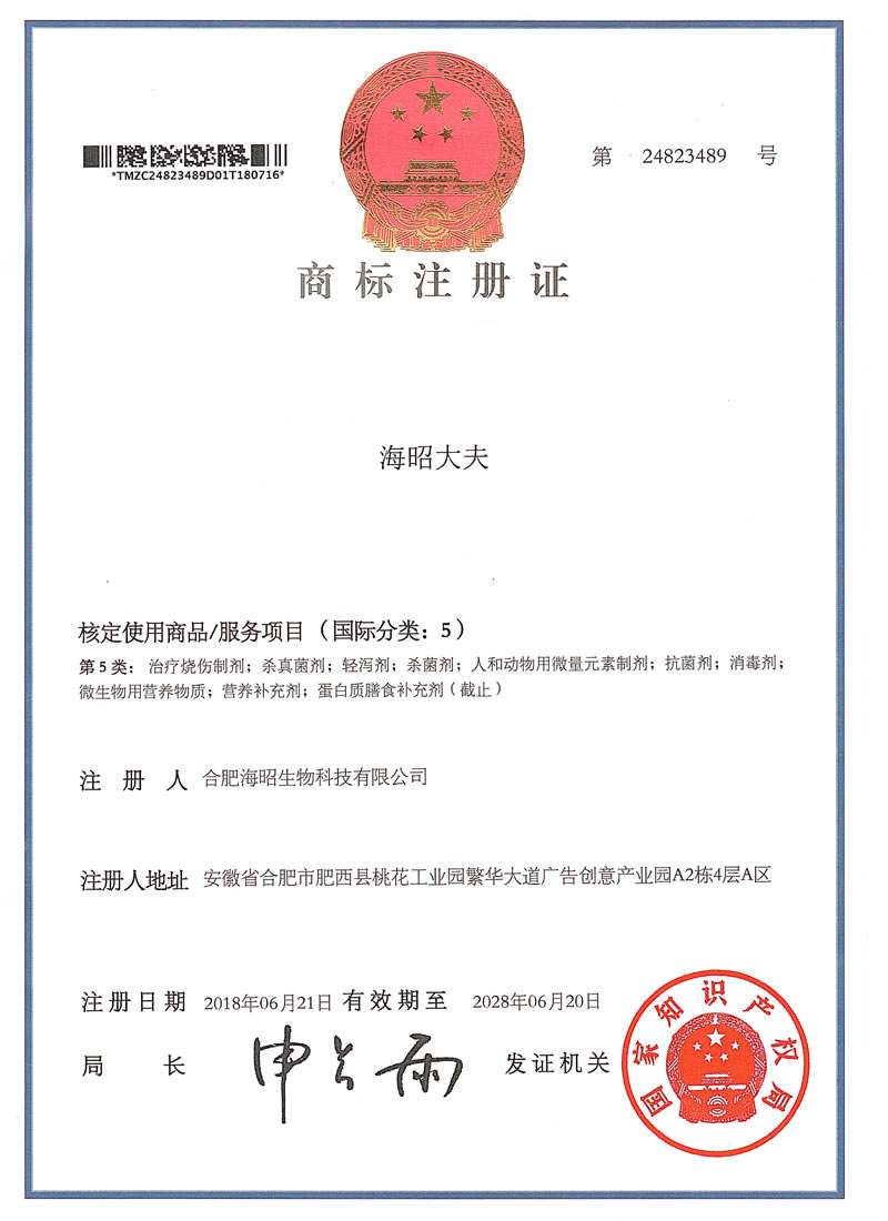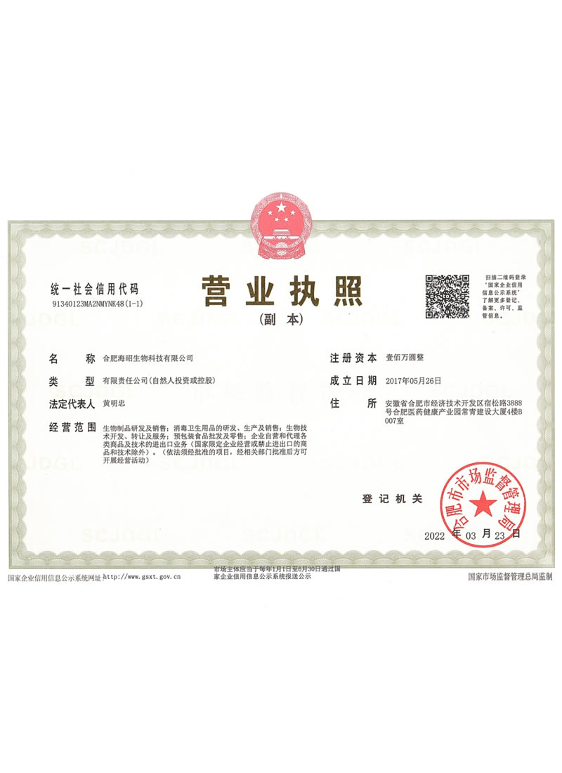 2018年5月,海昭生物榮獲“安徽十佳優秀品牌企業”稱號。2019年,公司在安徽省股權托管交易中心科技創新板成功掛牌(股權代碼612177)。2020年3月,公司被評為“安徽省(非公經濟)十佳誠信品牌”。 2021年6月30日,公司重組成功,引進專業技術團隊和資金,使得公司實力逐步壯大,同年8月,全資子公司旌德海昭生物成立,于2022年1月,旌德海昭生物生產基地建設完成并取得生產許可資質,成立微生物產品的研發中心與生產中心。